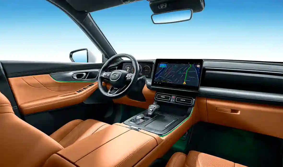 Клиентам предлагается пять элегантных цветов кузова на выбор: черный, серебристый, зеленый, белый и серый. Цветовая гамма салона GAC GS8 HEV представлена в светлом и темном исполнении.